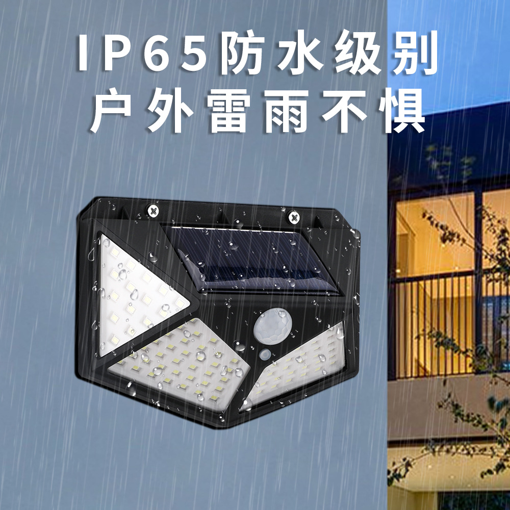 Solar lights outdoor garden lights human body induction wall lights four sides 100LED rechargeable home lighting street lights wholesale