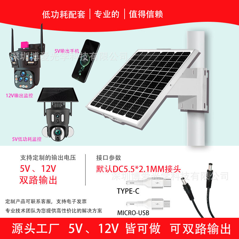 Solar power 5V12V dual output municipal engineering wiring-free camera IOT equipment dedicated power supply