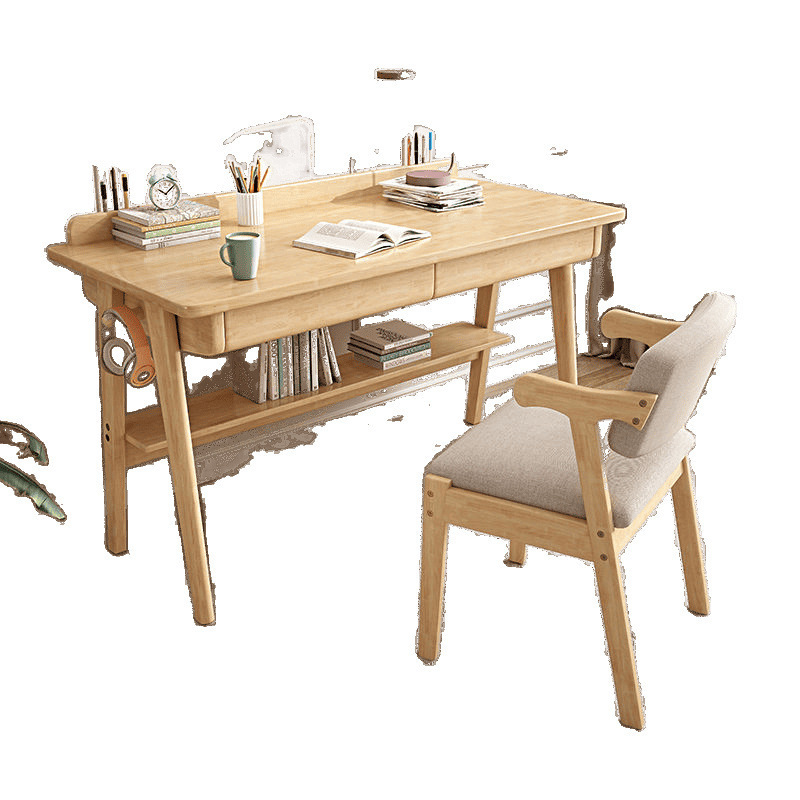 Solid Wood Desk Nordic Simple with Drawer Middle School Student Writing Desk Rubber Wood Desktop Computer Desk Bedroom Desk