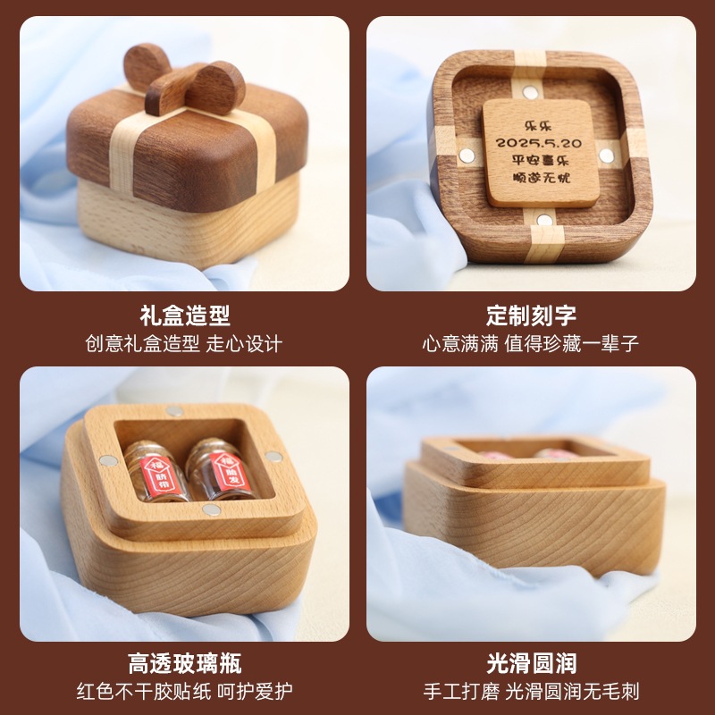 Solid Wood Umbilical Cord Fetal Hair Collection Box Baby Umbilical Cord Storage Bottle Storage Box to Preserve Fetal Hair Children's Souvenir Gift