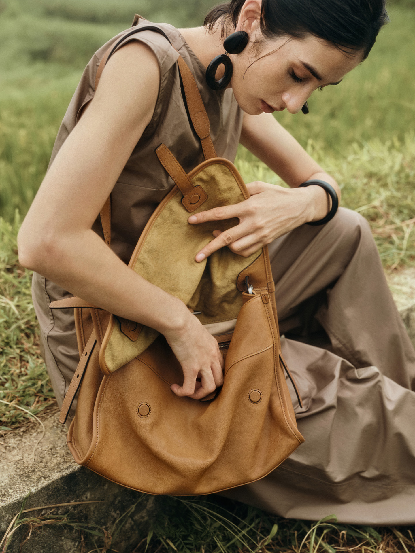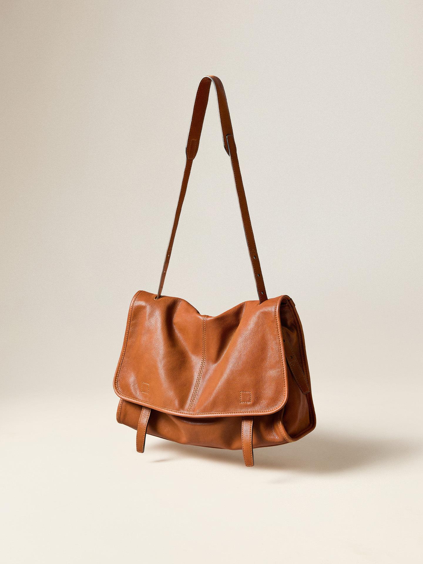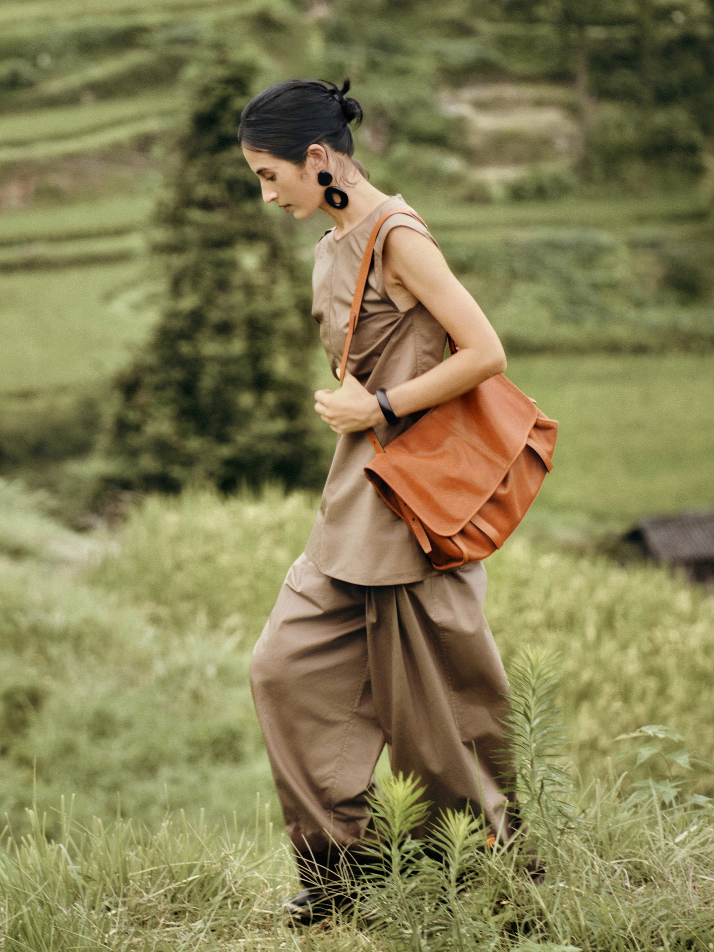 [Song Jia's Same Style] Qiu Zhen Vegetable Tanned Goatskin Messenger Mail Bag Relaxed Large Capacity Commuter Casual Messenger Bag for Women