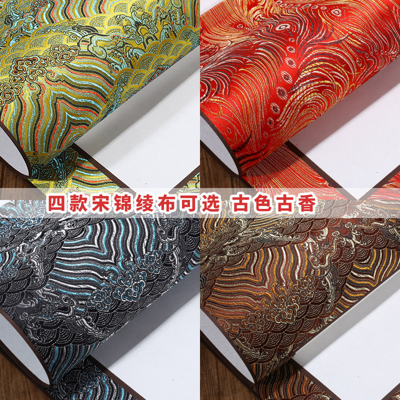 Song-Style Brocade Scroll Blank Brocade Cloth National Style Rice Paper Hanging Scroll Calligraphy Painting Paper Semi-Processed No Mounting Required for Hanging Calligraphy and Painting