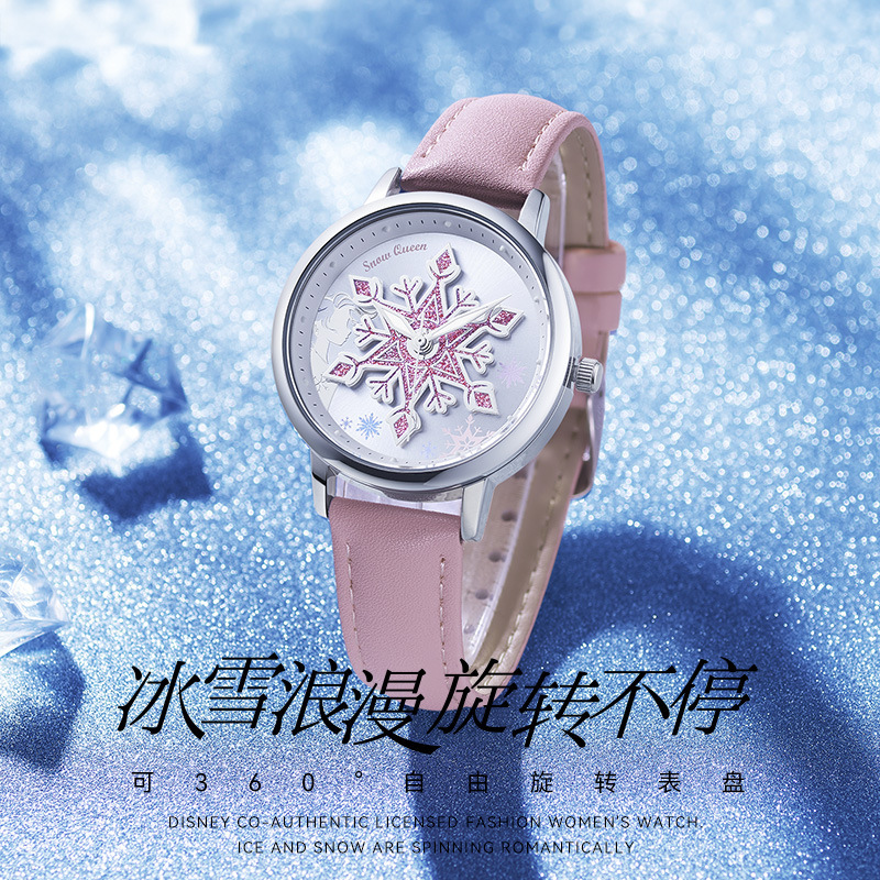 Source manufacturer Disney/Disney ice and snow romantic rotatable snowflake niche girls niche quartz watch 299