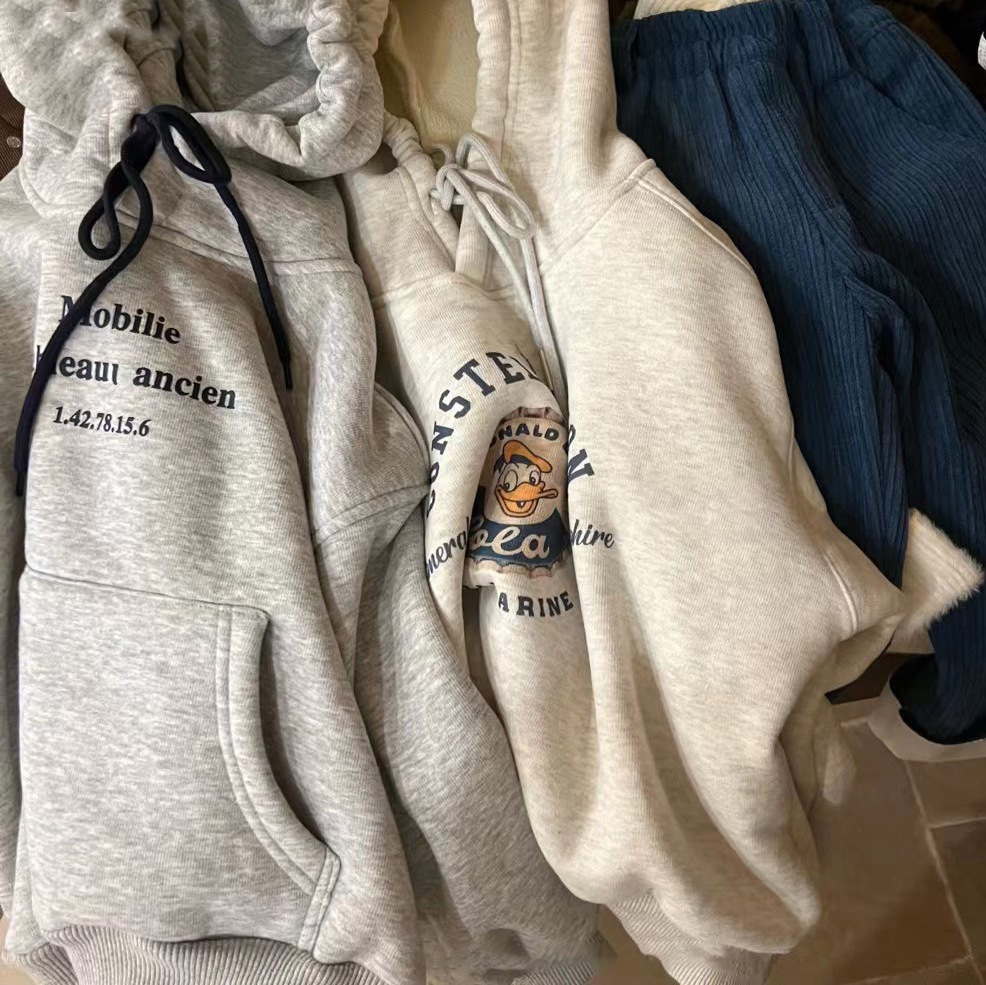Korean Boys and Girls Fleece-Lined Thick Hooded Sweatshirt 2025 Autumn and Winter Children's Clothing Stylish Fashionable Boys' Tops