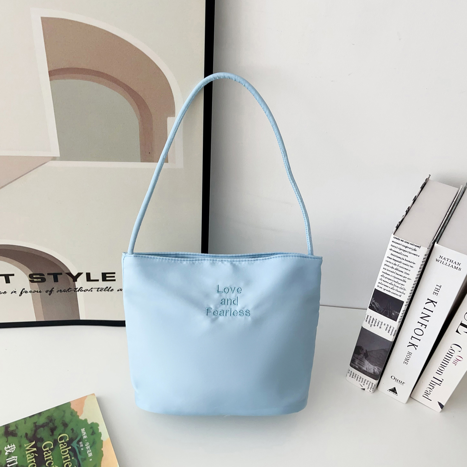 Souvenir Korean Handbag for Women, Nylon Fabric Original Women's Bag, Fashionable Embroidered Underarm Bag, Versatile Shoulder Bag