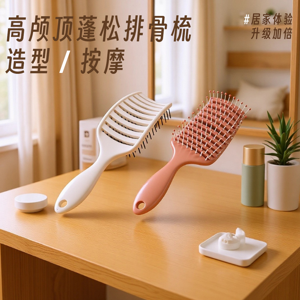 Special Curved Hair Styling Massage Brush for Women with Fluffy Hair, Big Curls, and Old Brand Hairdressing Comb