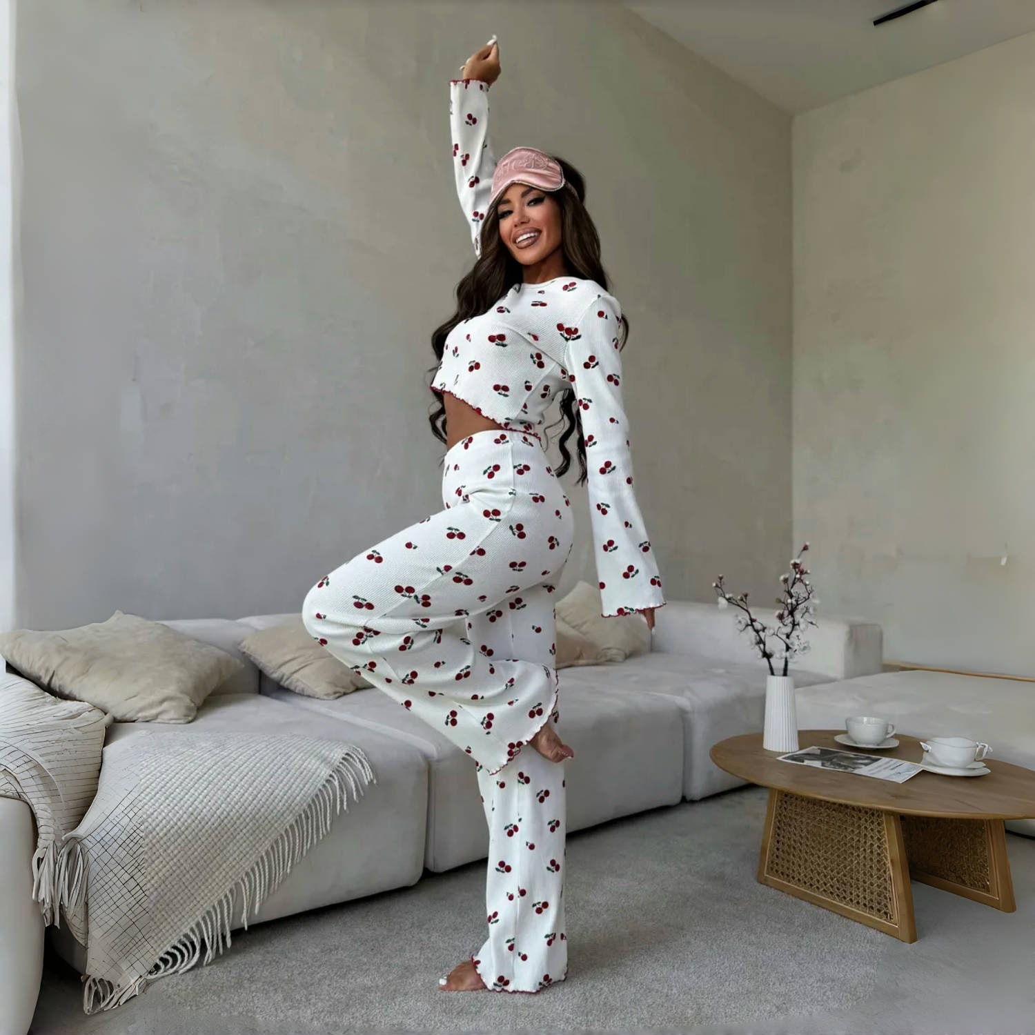Specially Designed for Cross-Border European and American Women's Pajamas, Spring & Fall Trumpet Sleeve Printed Curled Long-Sleeved Trousers Home Wear Two-Piece Set