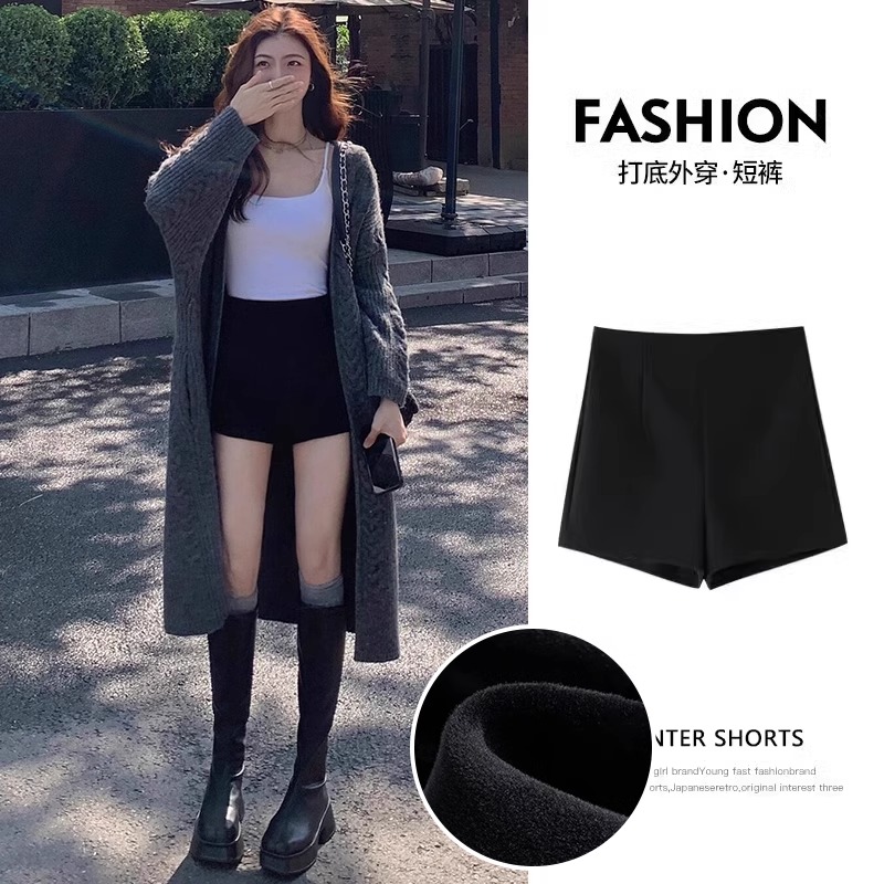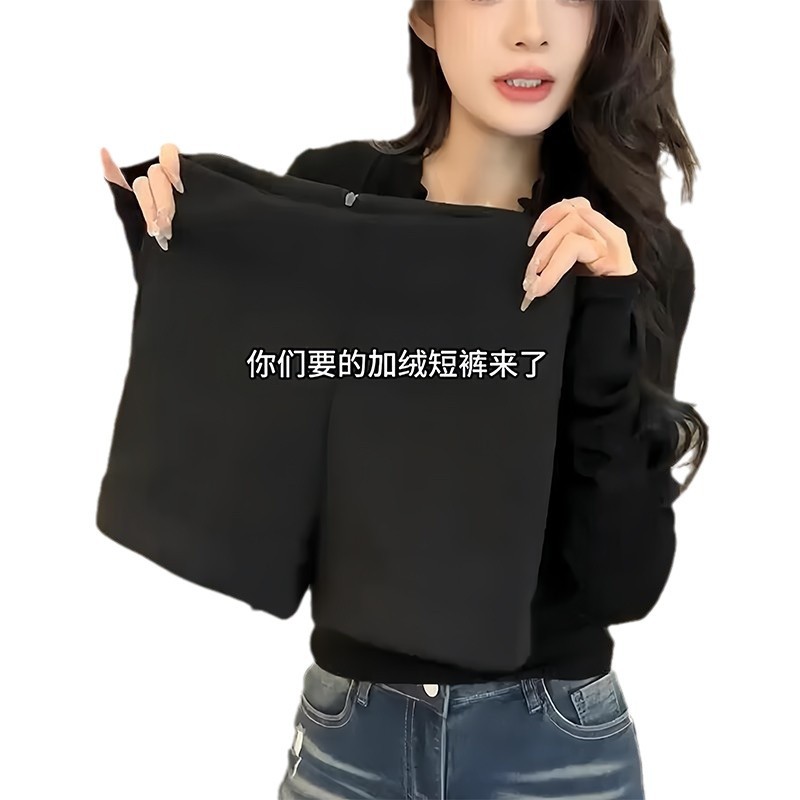 Spice Girls fleece-lined Black Shorts Women's Fall/Winter High Waist Slimming 2024 New Style Small Outer Wear Bottoming Hot Pants Boots Pants