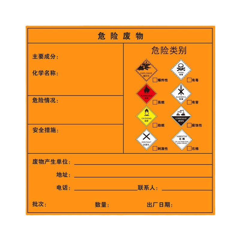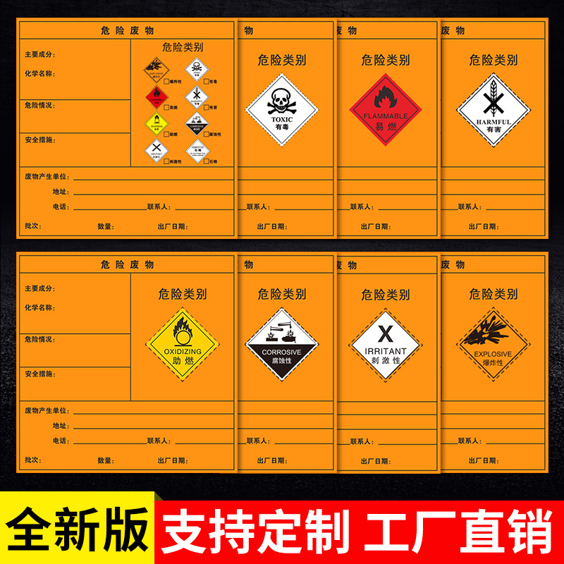 New National Standard Hazardous Waste Label Dangerous Goods Waste Identification Plate Self-Adhesive Warning Sticker 10*10 20*20