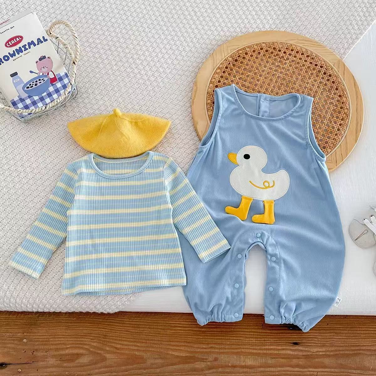 Spring 2025 Cartoon Strappers Two-Piece Baby Clothes Outfit Newborn Boys' Strappers