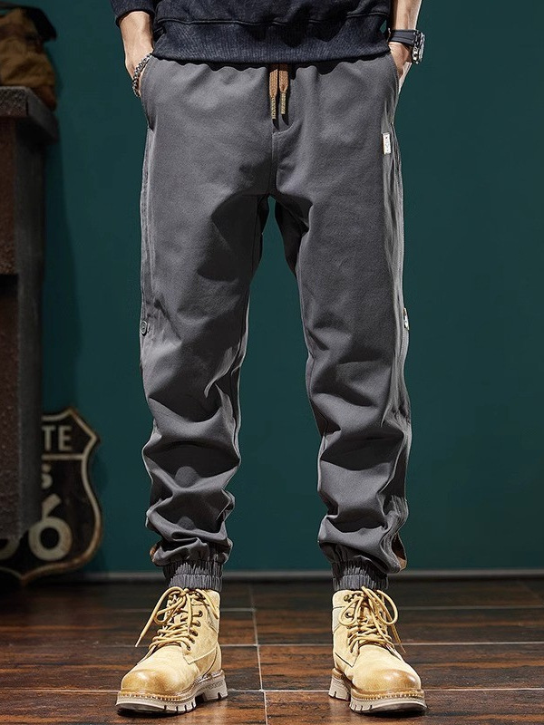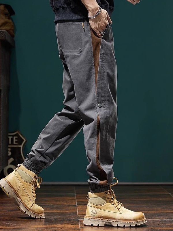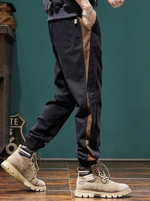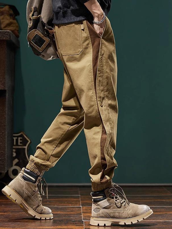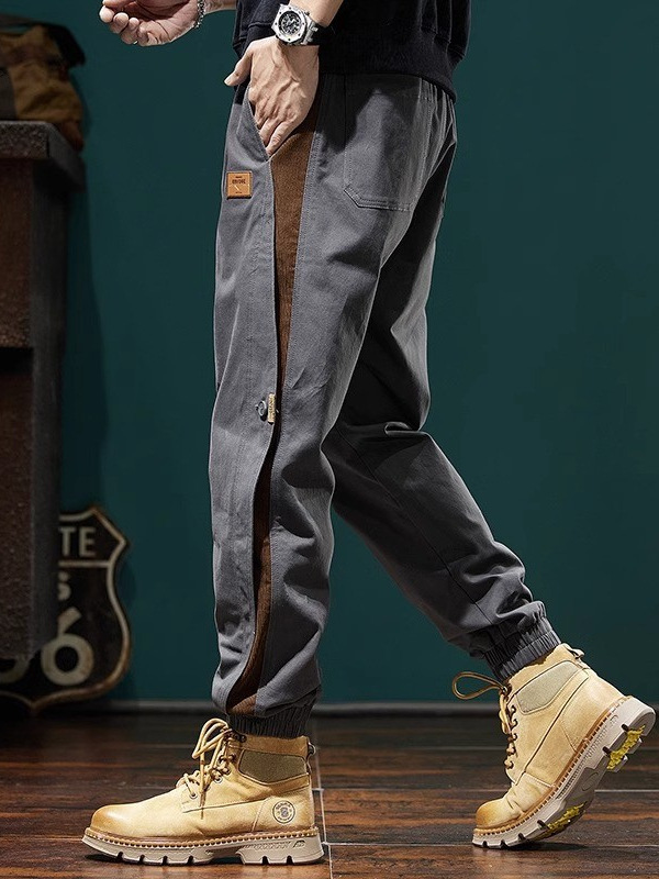 Spring and Autumn New Casual Pants Men's Trendy Stitching Color American Cockwork Pants Sports Leg Haren Pants Men