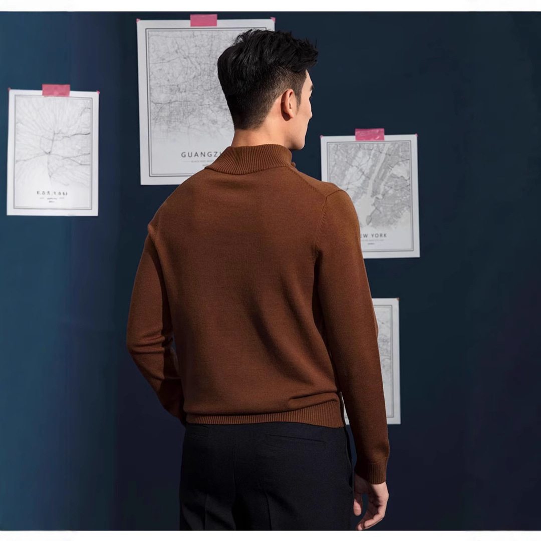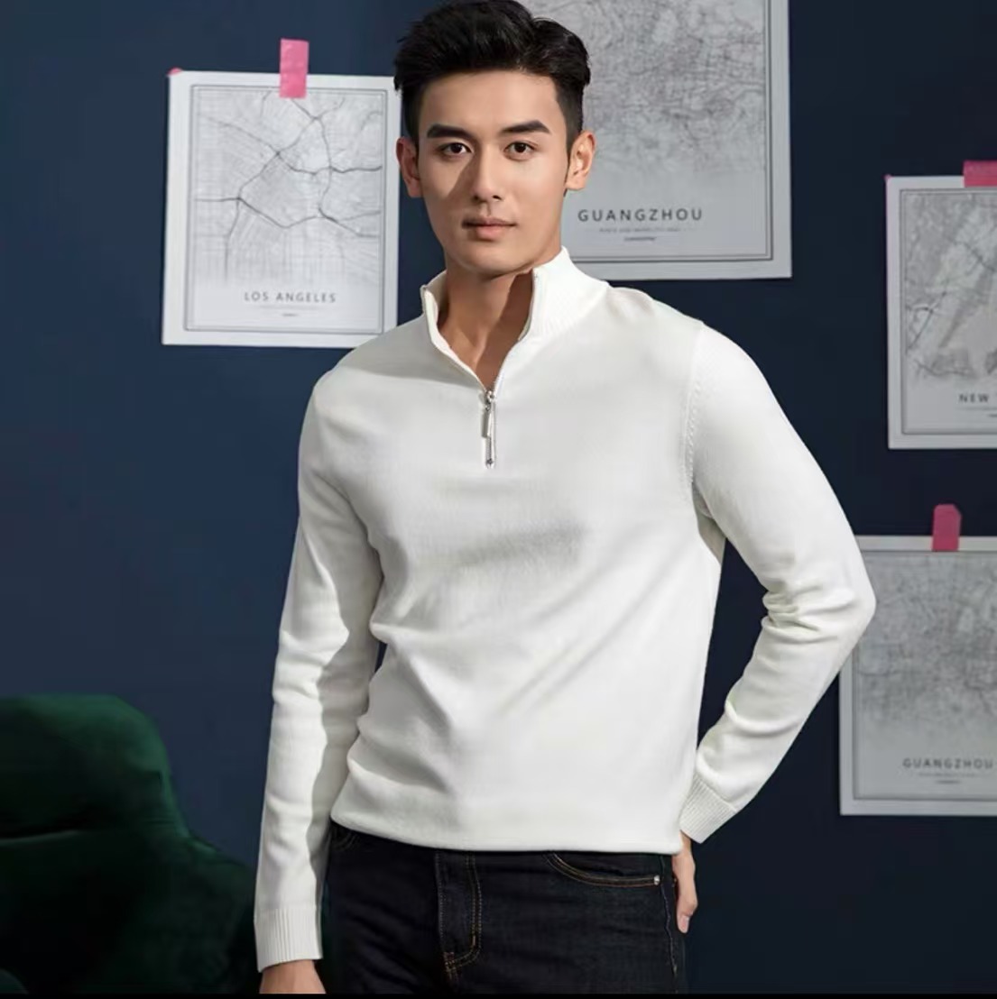Spring and Autumn New Men's Long Sleeve Casual Stand Collar Half-Zip Slim Fit Pullover Sweater Fashionable Slimming Chanel Style