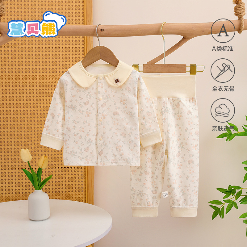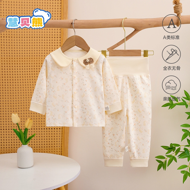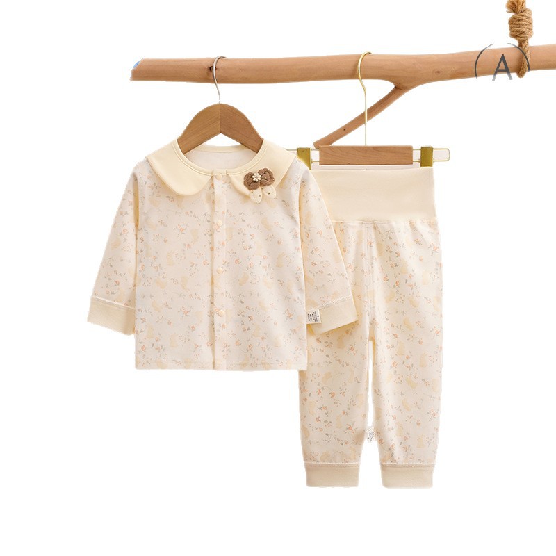 Spring and Autumn Pure Cotton Long-Sleeved Pajamas for Infants and Young Children Split Suit Clothes Autum Full Moon Baby Girl's Home Clothes