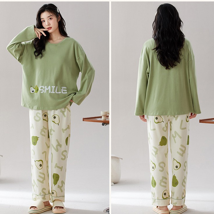 Spring and Autumn Pure Cotton Long-Sleeved Pajamas for Women, All-Cotton Breathable One-Piece with Chest Pad, Pullover Loungewear That Can Be Worn Outside