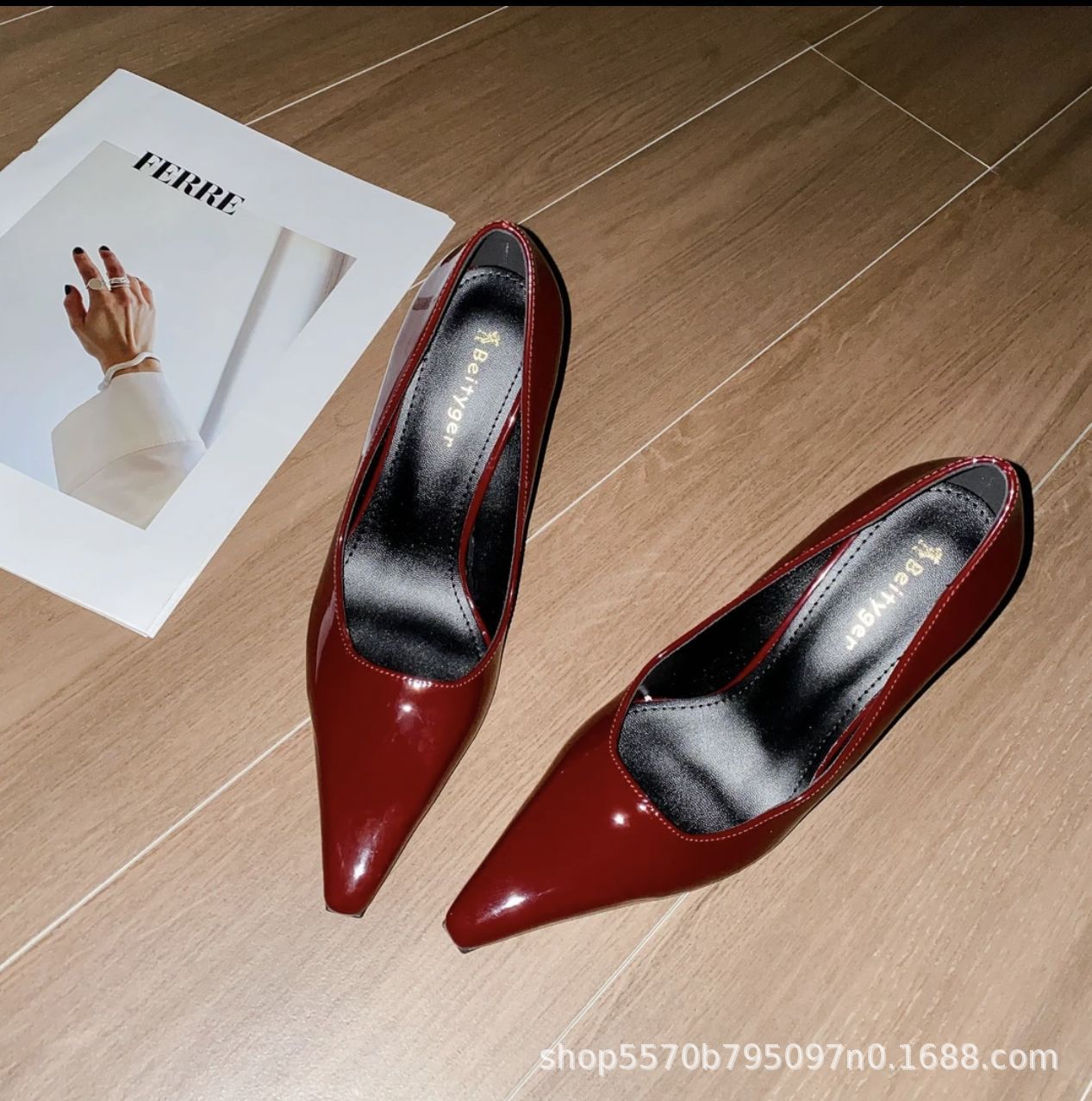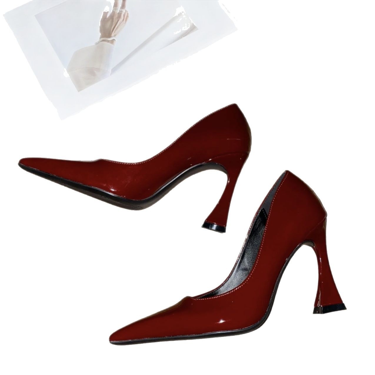 Spring and Summer 2025 New High Heels Women's Square Toe Thin Heel Royal Sister Style Sexy Patent Leather Retro Not Tired Foot Shallow Mouth Single-layer Shoes