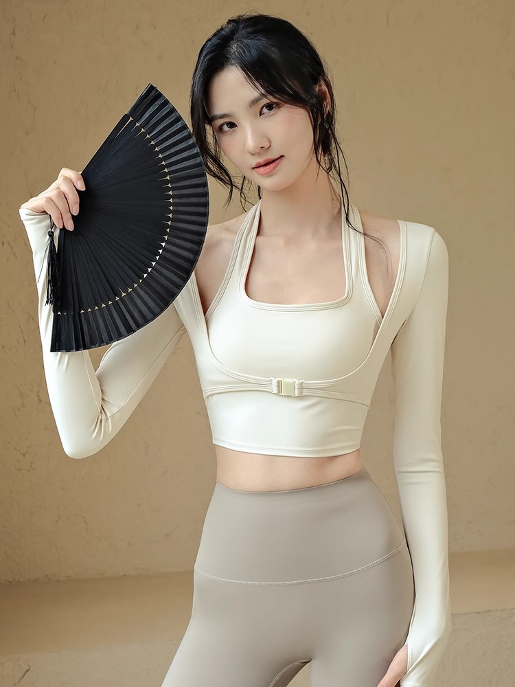 Spring Quick-Drying Running Fitness Sports Tight Sling with Fixed Chest Pad Fake Two-Piece Top Long-Sleeved Yoga Wear