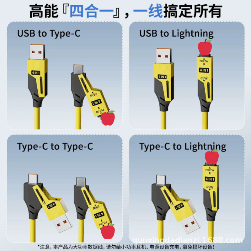 Spring telescopic four-in-one fast charging 65w charging cable for Apple iphone15 Huawei carplay data cable