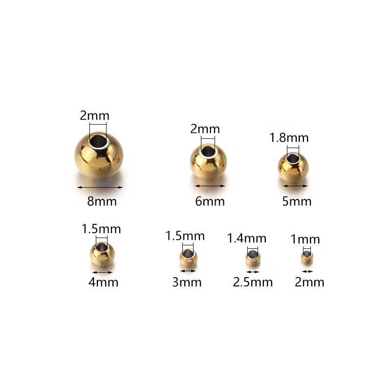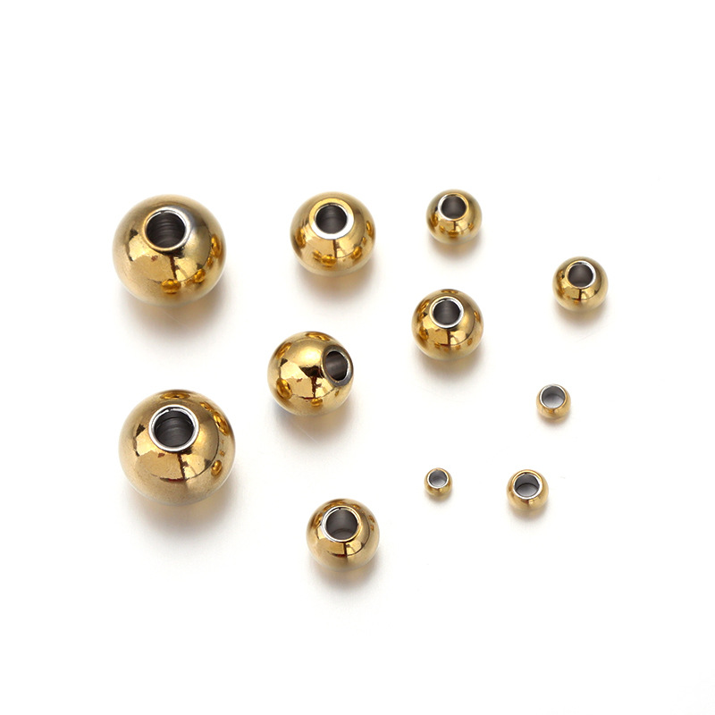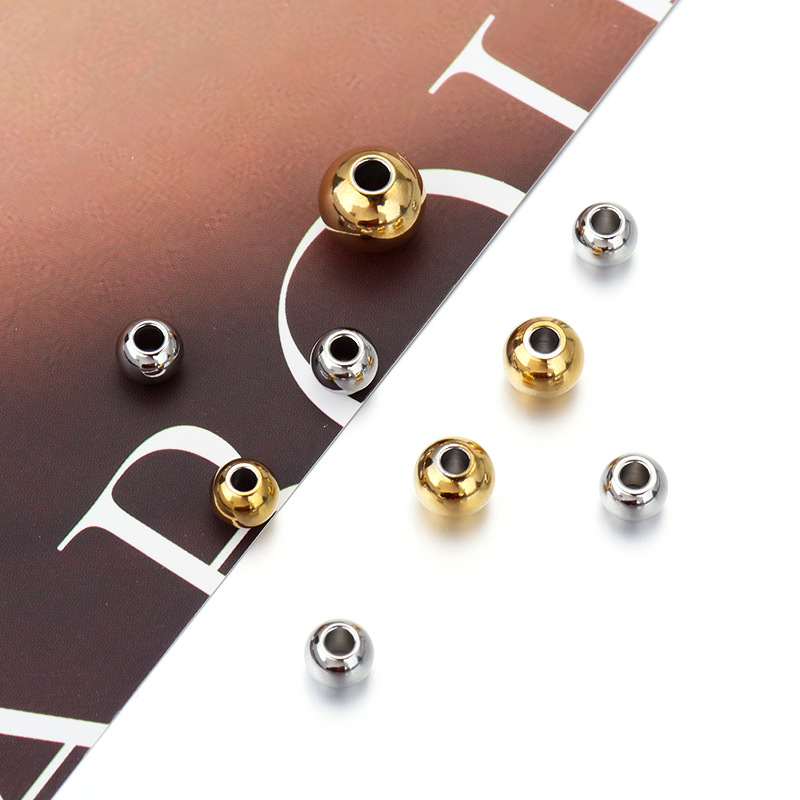 Stainless steel hole beads straight hole beads diy necklace bracelet spacer beads accessories European and American personality fashion round beads decoration