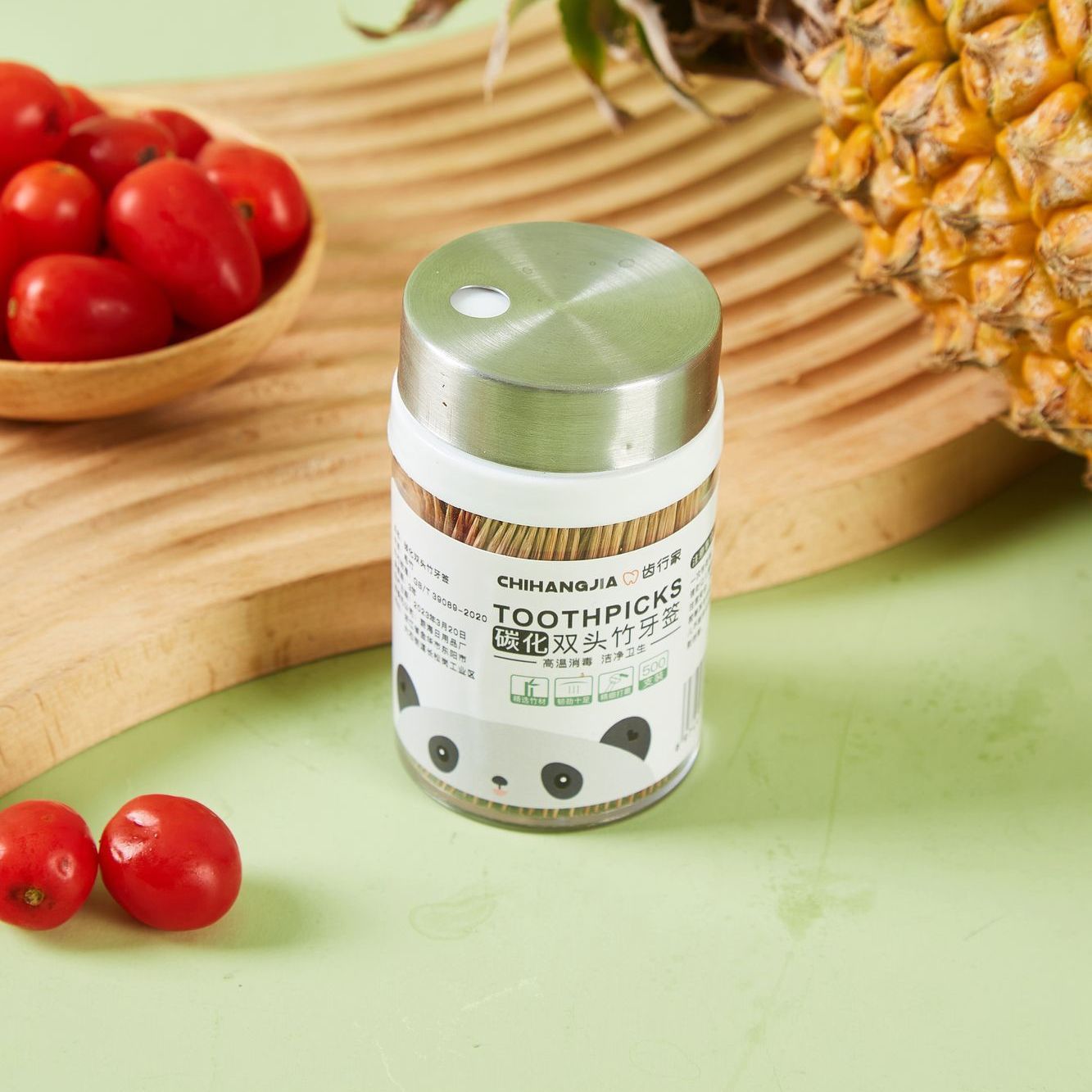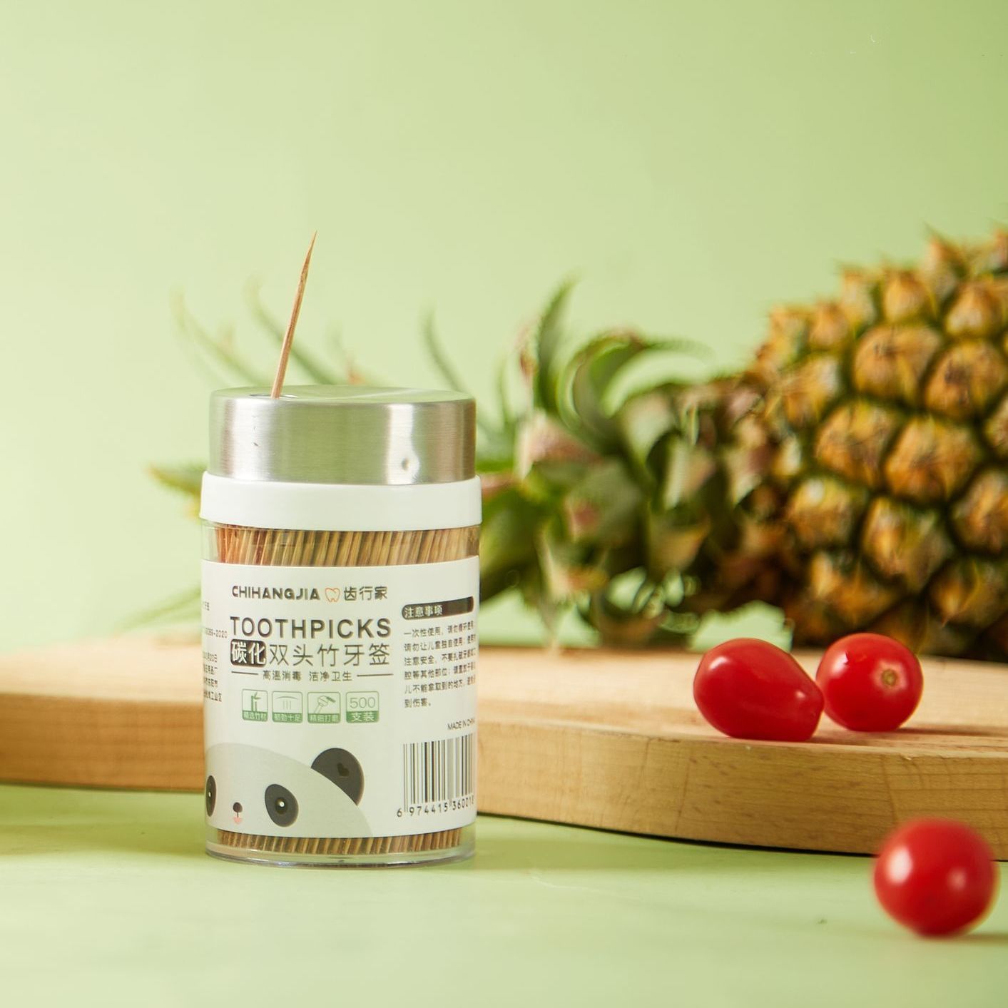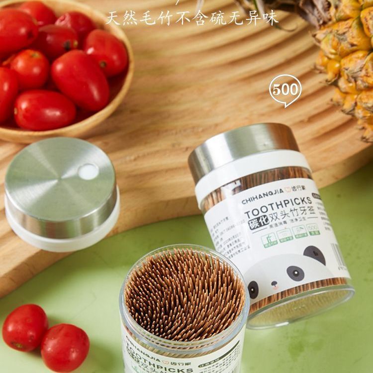 Stainless Steel Lid Boxed Bamboo Toothpicks Double-Ended Household Dental Floss Hotel Use Bamboo Toothpicks Disposable Wholesale Tube-Packed