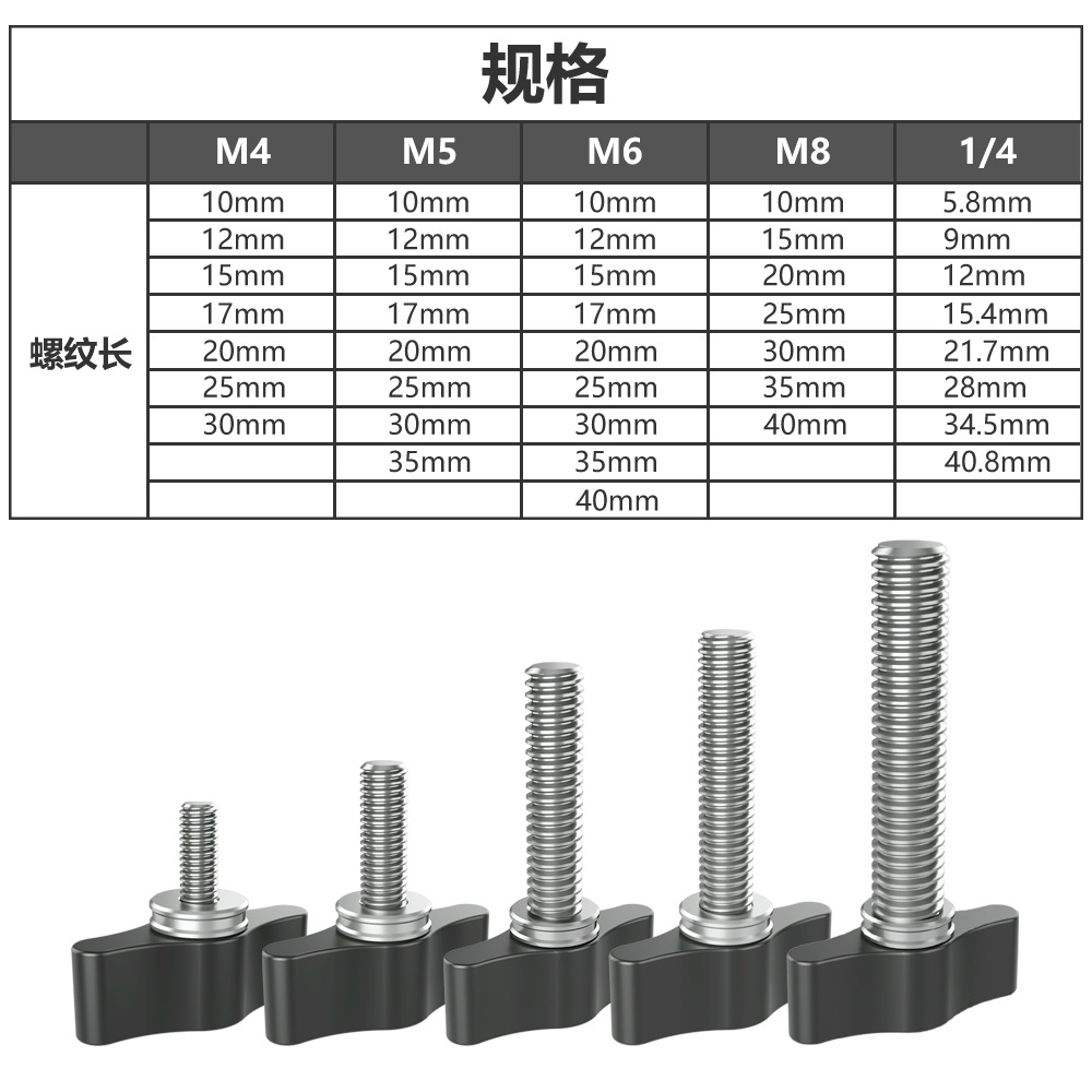 Stainless steel one-word color handle screw 1/4M5M6M4M8 metal knob camera accessories T-shaped hand screw