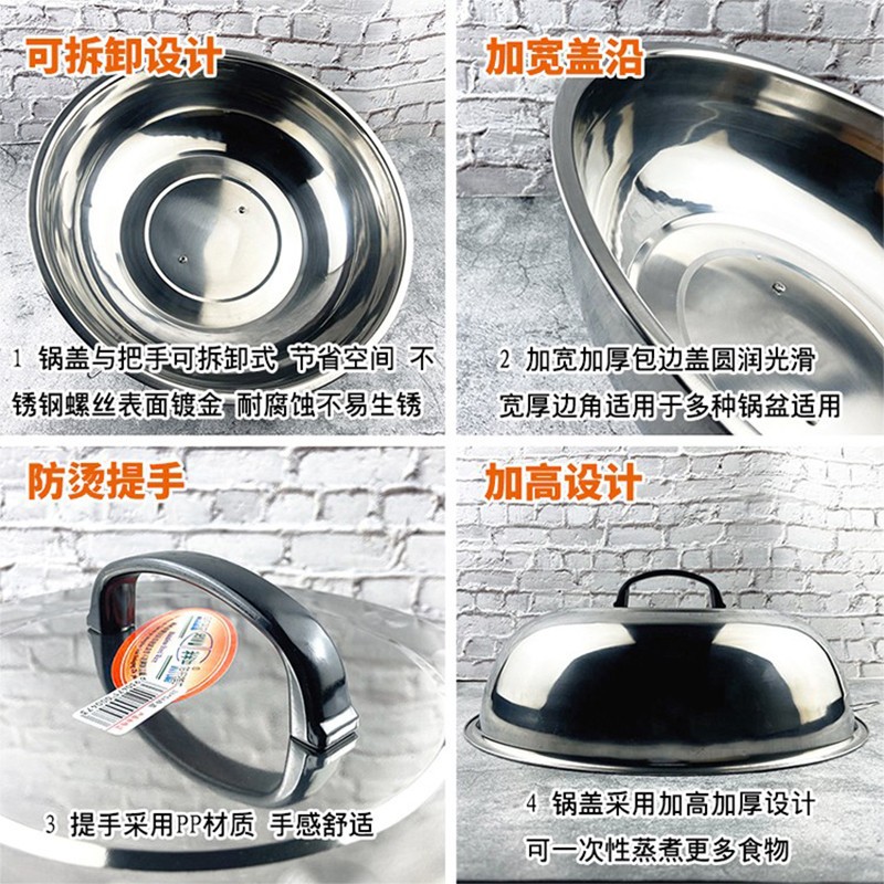 Stainless Steel Pot Cover Household Large and Small Stir-frying Pot Cover Deepened High Arch Soup Steamer Cover Old-fashioned Iron Ding Round Cover