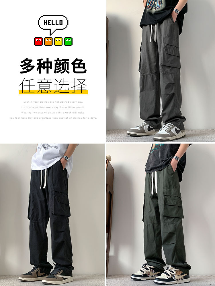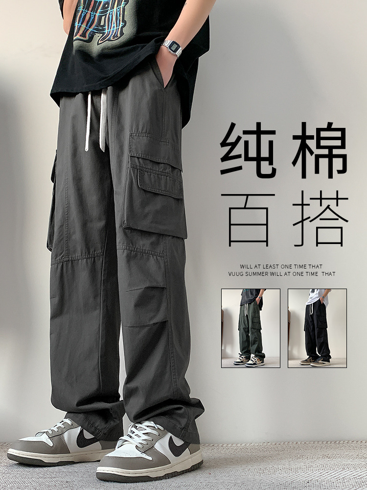 Straight Casual Pants Men's Spring and Autumn Cotton Tooling Pants 2024 New Men's Loose Pants for Boys Teenagers