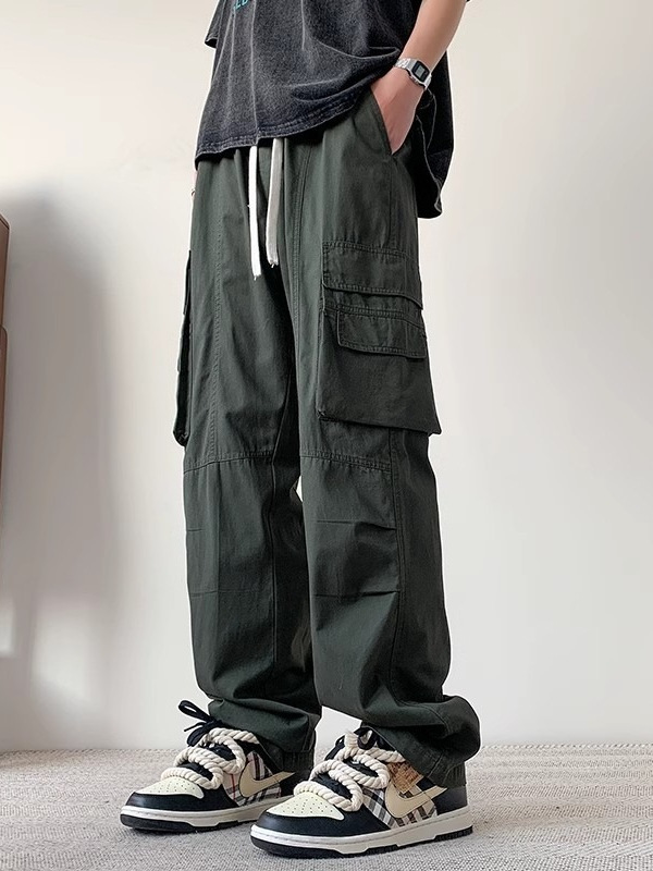 Straight Casual Pants Men's Summer Pure Cotton Crock Pants 2024 New Summer Thin Trousers for Boys and Teenagers