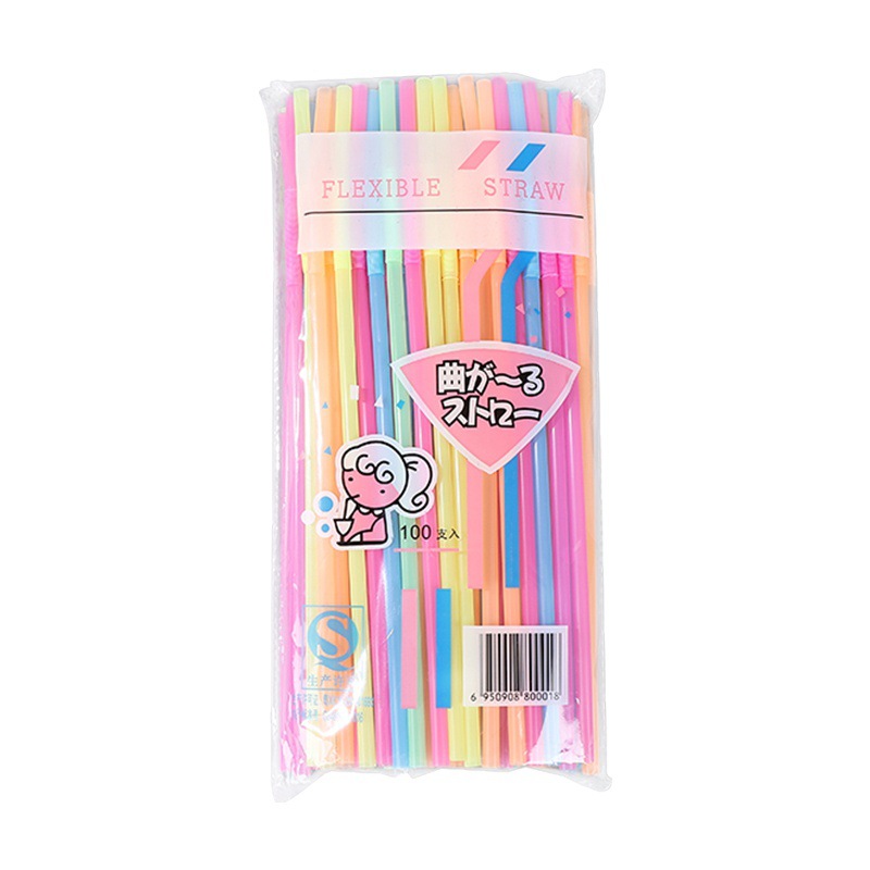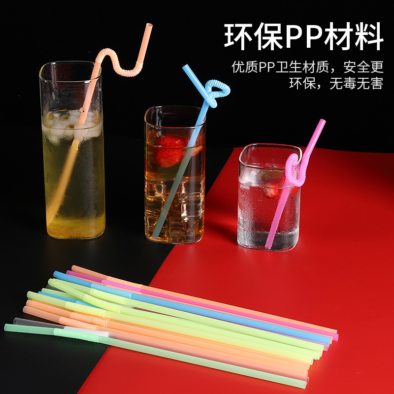 Straw Disposable Art Color Milk Tea Juice Drink Soybean Milk Bendable Creative Plastic Long Straw Commercial