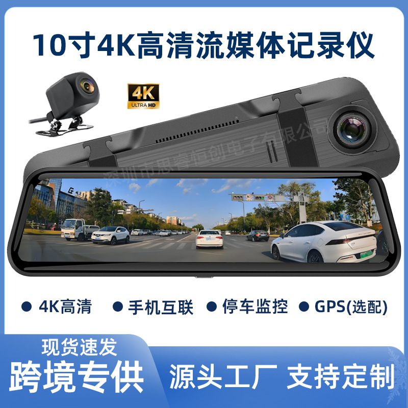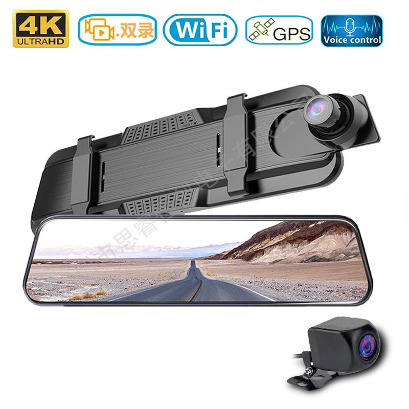 Full-Screen Streaming Rearview Mirror Driving Recorder 4K High-Definition Night Vision Wifi Front and Rear Dual Lens Taiwan Electronic Dog