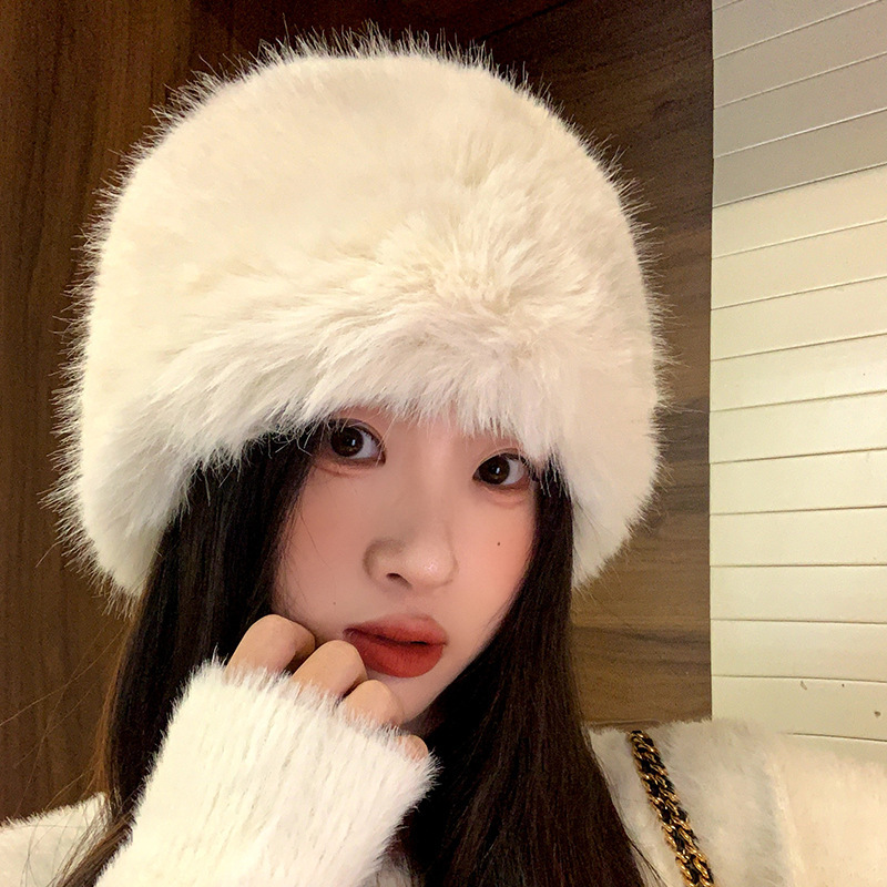 Stuffed Hat for Women, Versatile in Autumn and Winter, Mongolian Hat, Warm and Ear-Protecting Knitted Woolen Hat, Cold-Proof Imitation Fur Fisherman Hat