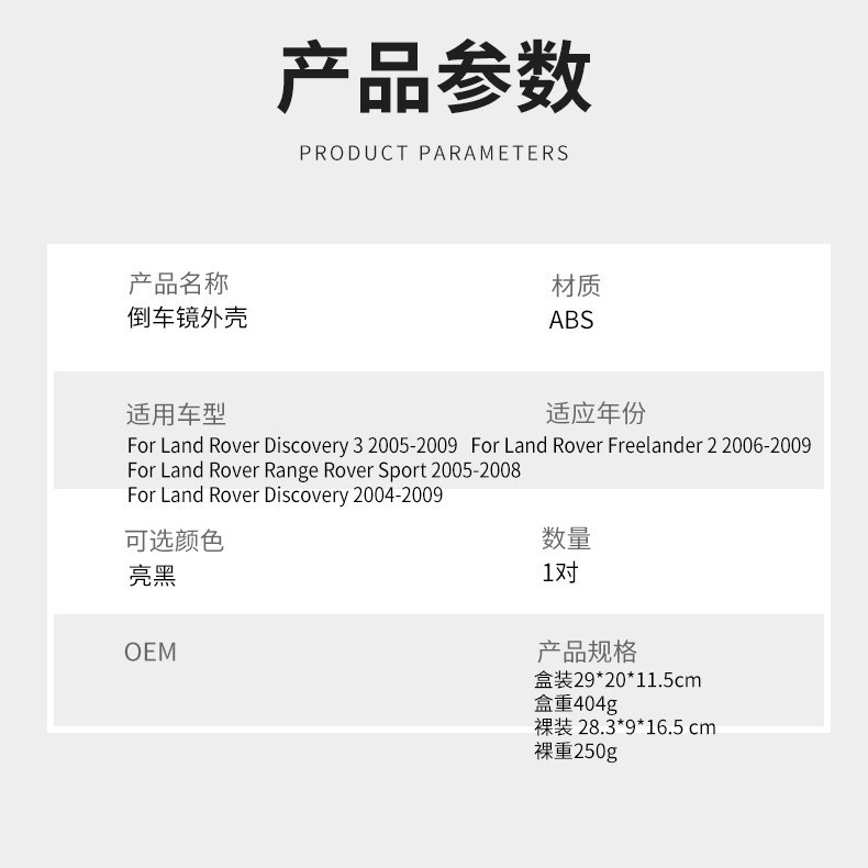 Suitable for Land Rover Discovery 3 Range Rover Land Rover 2 Reversing Mirror Rear Shell Rearview Mirror Shell Accessories