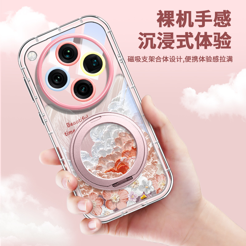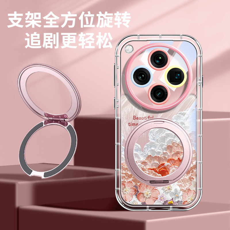 Suitable for Oppofindx8 Mobile Phone Case Findx8S+ Oil Painting Integrated Stand Oppofindx8Pro Fresh Feather