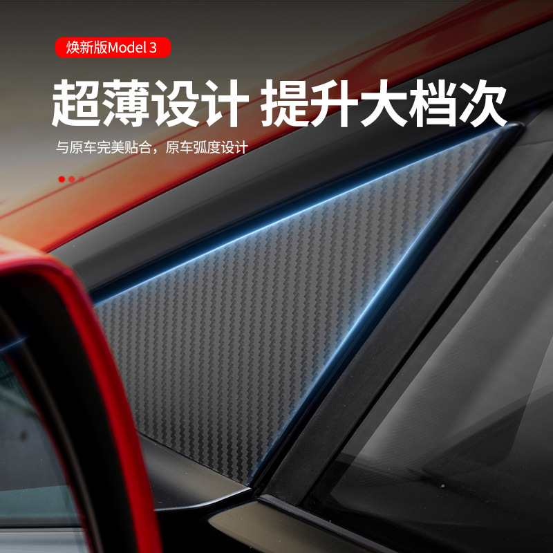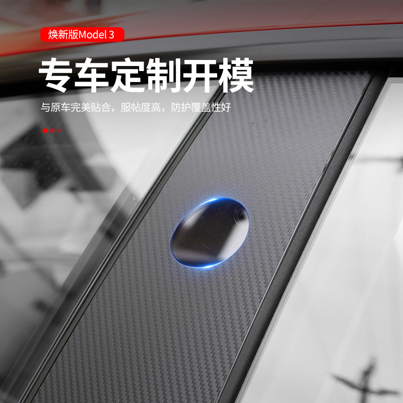 Suitable for Tesla Model Y New Version Model 3 A+B Pillar Stickers Car Exterior Accessories Carbon Fiber Pattern Stickers