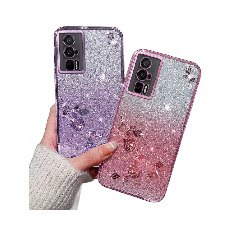 Suitable for Xiaomi 17 Glitter Gradient Phone Case, Redmi Note 15 Electroplated Rhinestone K90 Eternal Flower 14C Protective Cover