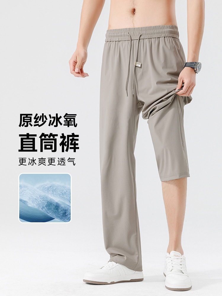 Summer Casual Pants Men's Thin Ice Silk Pants Breathable Cool Straight Pants Summer Loose All-match Wrinkle-resistant Pants