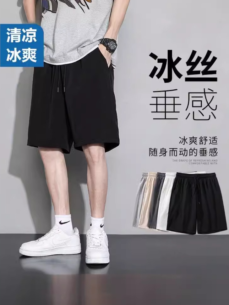 Summer Five-bomb Shorts Thin Men's Sports Pants Loose Fat Black Ice Silk Men's Pants Shorts