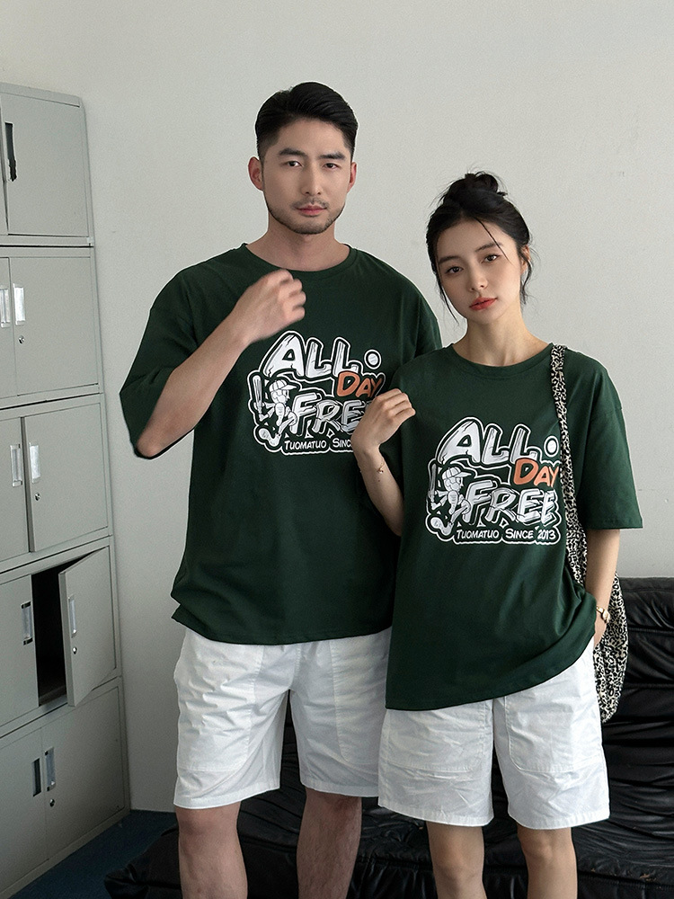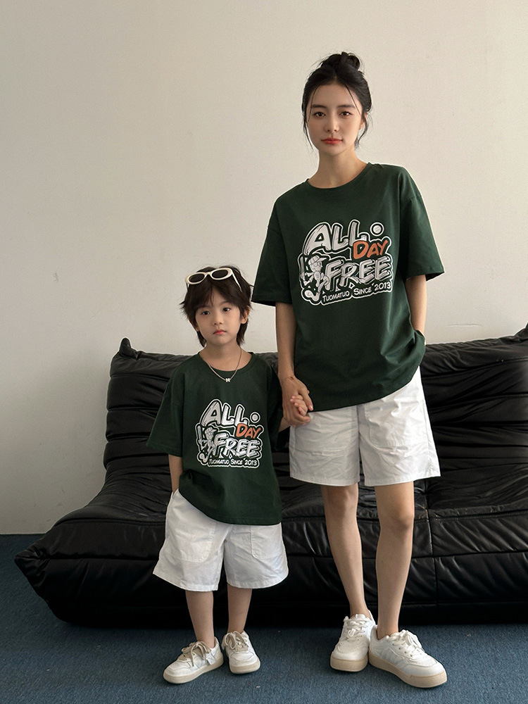Summer Matchinging Family Clothing 2025 New Korean Style Breathable Printing Family Clothing for a Family of Three or Four Short-Sleeved Trendy