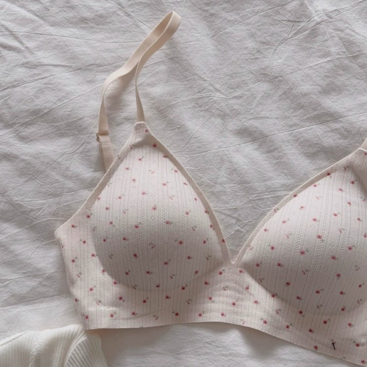 Summer Small Floral Underwear Women's French Triangle Cup Thin Small Breast Push-Up No Rims Comfortable Bra New Style