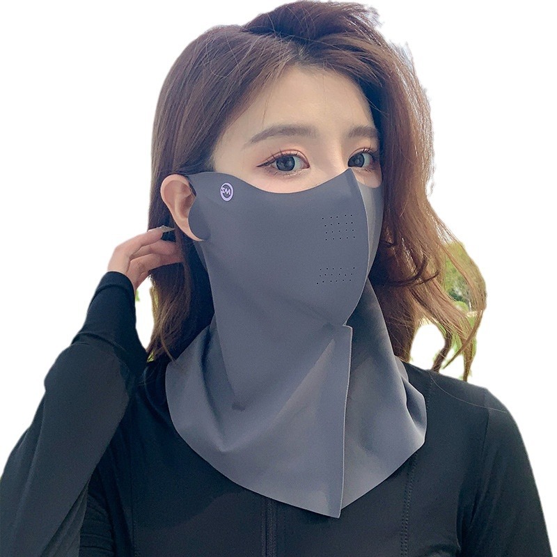 New Ice Silk Sun Protection Mask for Women, Neck Protection Integrated with Breathable Holes, Cycling Mask, 3D Anti-Uv Seamless Mask