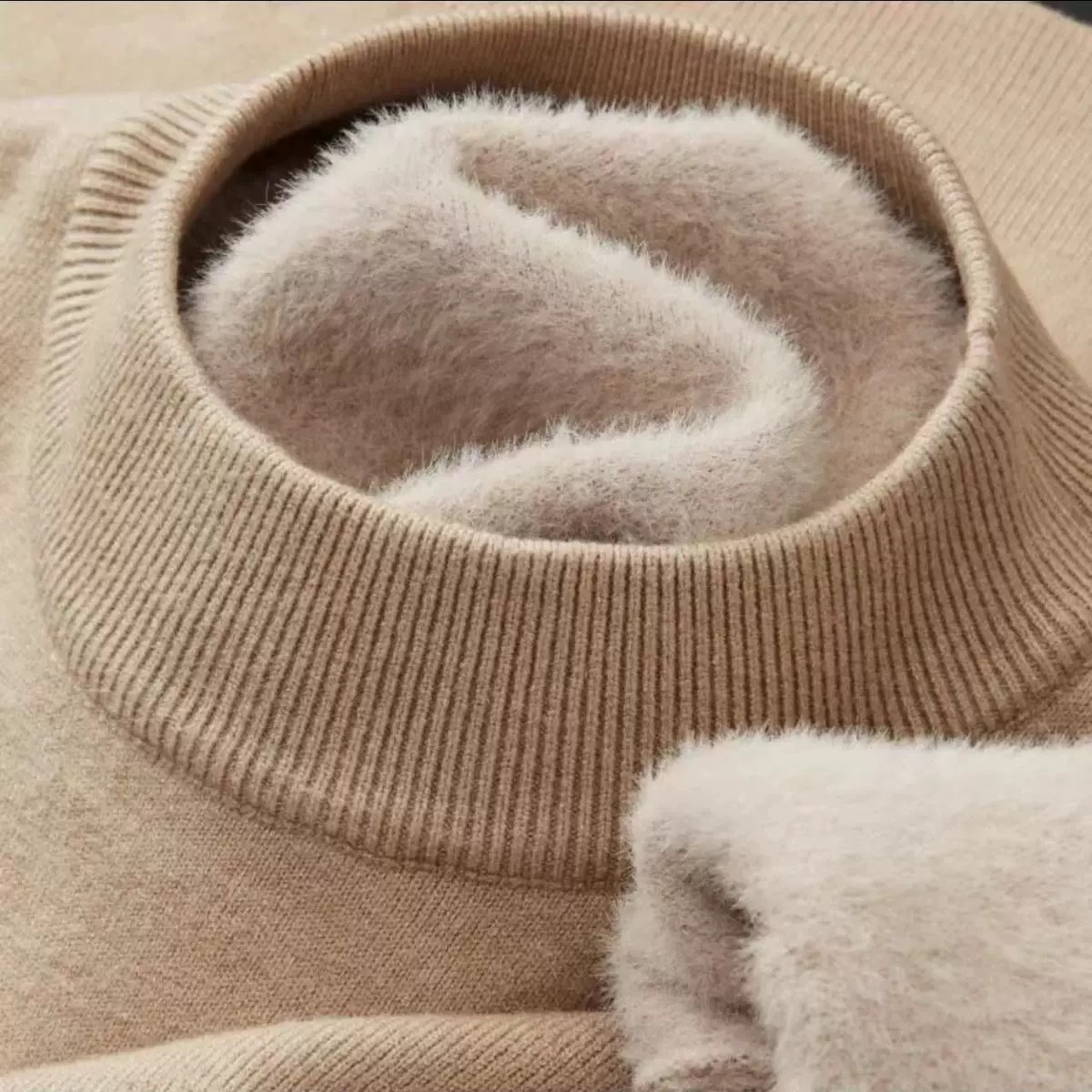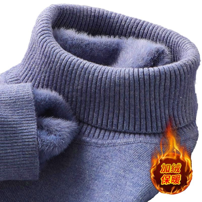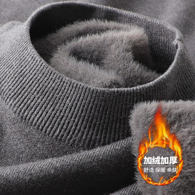 Men's Sweater Half Turtleneck Autumn and Winter All-In-One Velvet Versatile Slim Knitted Bottoming Shirt Mid-Collar Top Trendyy and Durable Men's Clothing