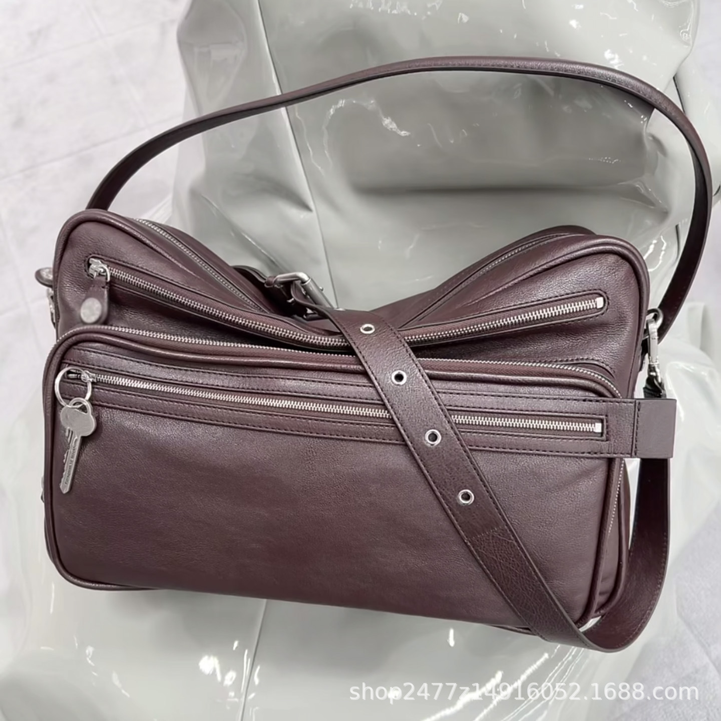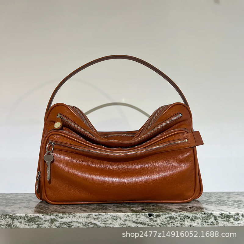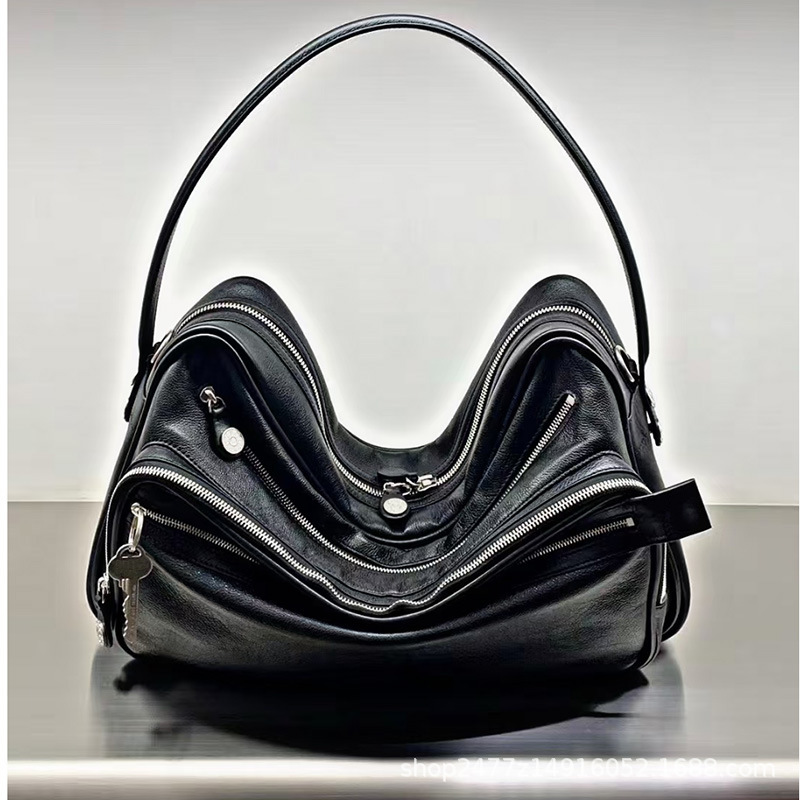 Swedish Niche New Genuine Leather Multi-Compartment Zipper Handbag Key Pendant Armpit Motorcycle Bag Single Shoulder Crossbody Bag