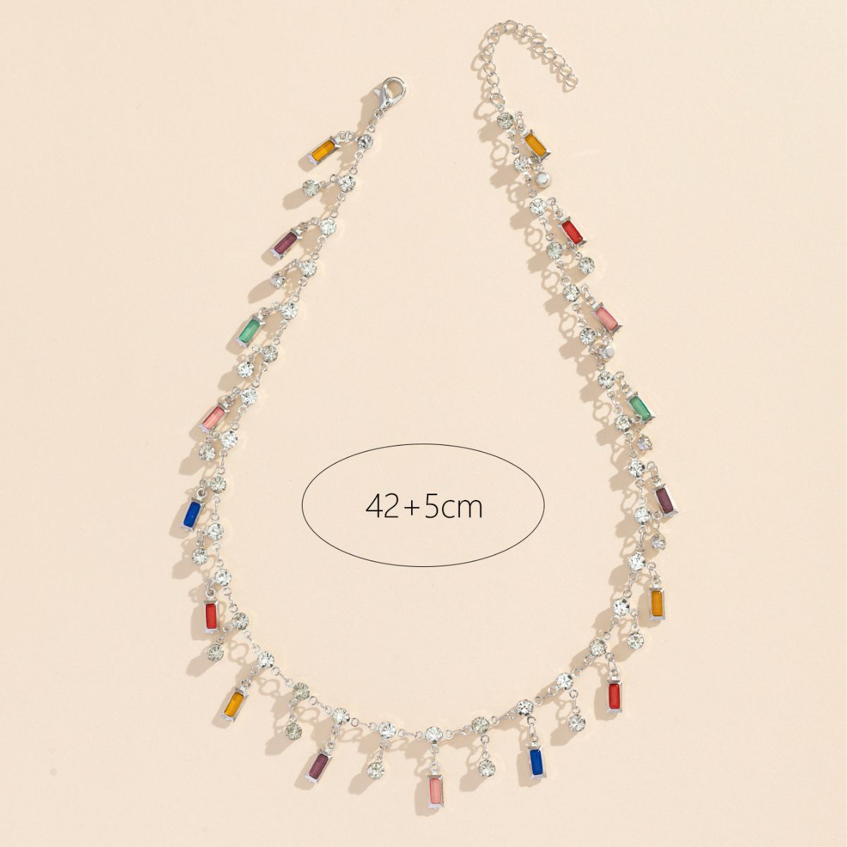 Sweet cool hot girl style ~ rainbow tassel zircon necklace female personality all-match pure desire clavicle chain High Sense Lock