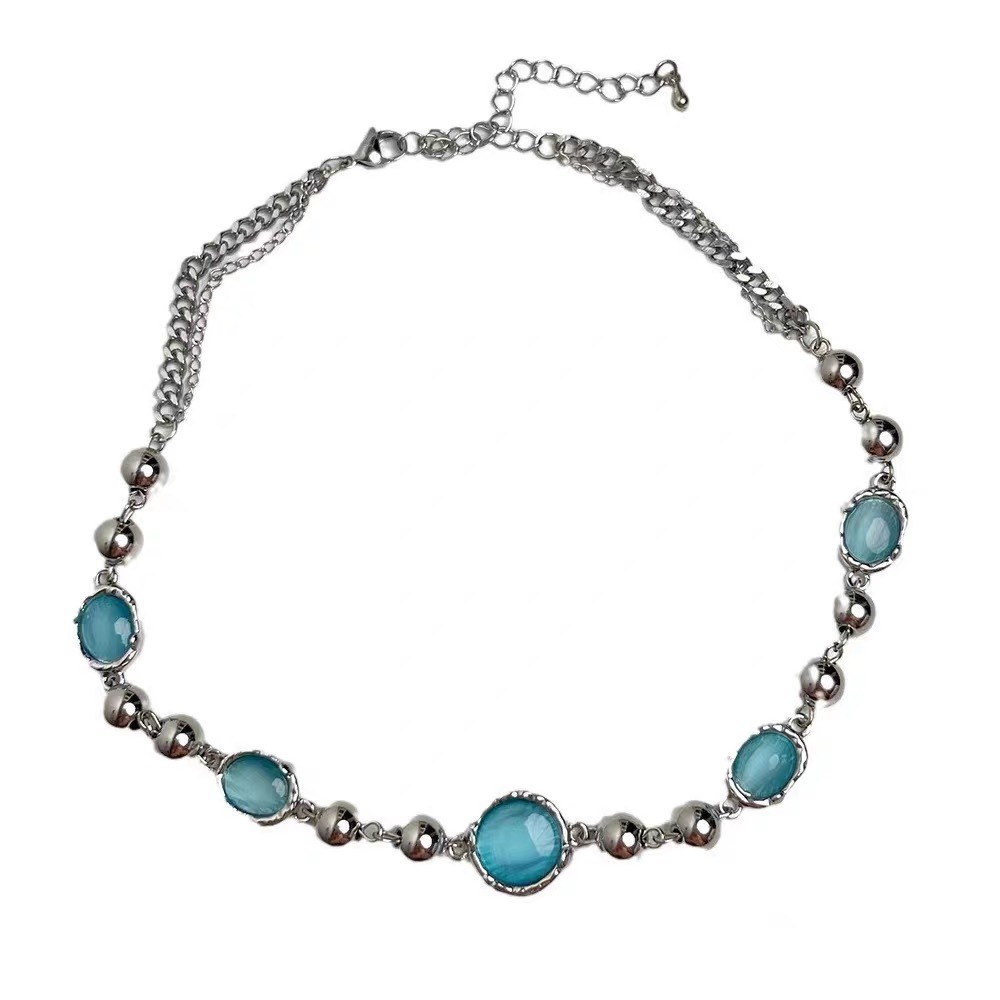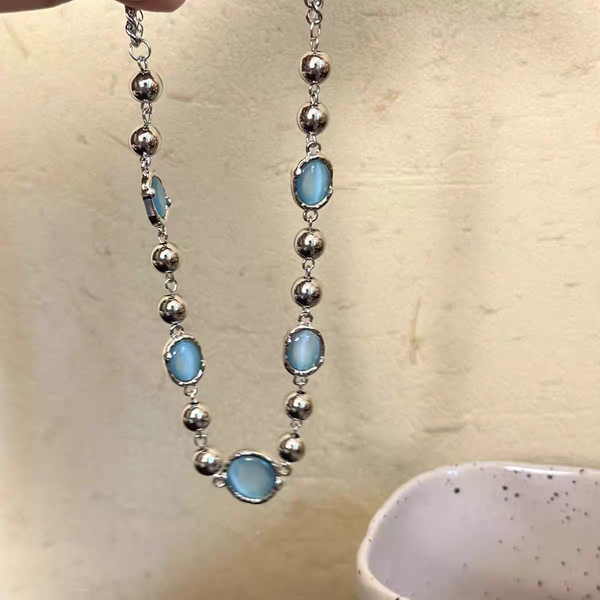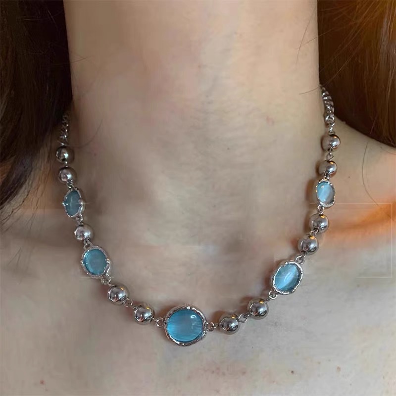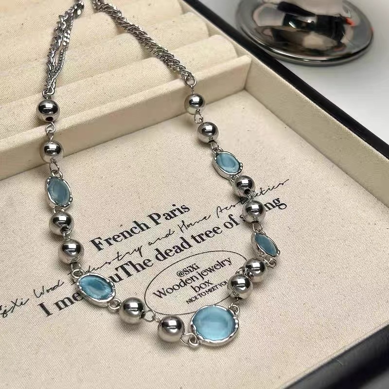Sweet Cool Treasure Blue Beaded Necklace Women's High-level Design Sense Exquisite Niche Stitching Clavicle Chain New Fashionable Necklace Chain for Men