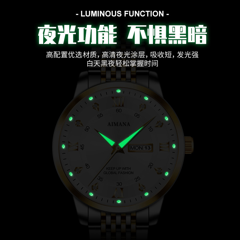 Swiss brand cross-border business genuine goods quartz luminous double calendar ultra-thin men's waterproof men's watch a generation of hair
