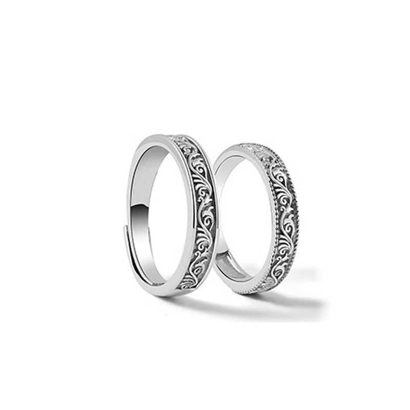 Tang Grass S925 Sterling Silver Couple's Ring for Men and Women a Pair of Personalized Niche Design Retro Curly Pattern Pair Ring