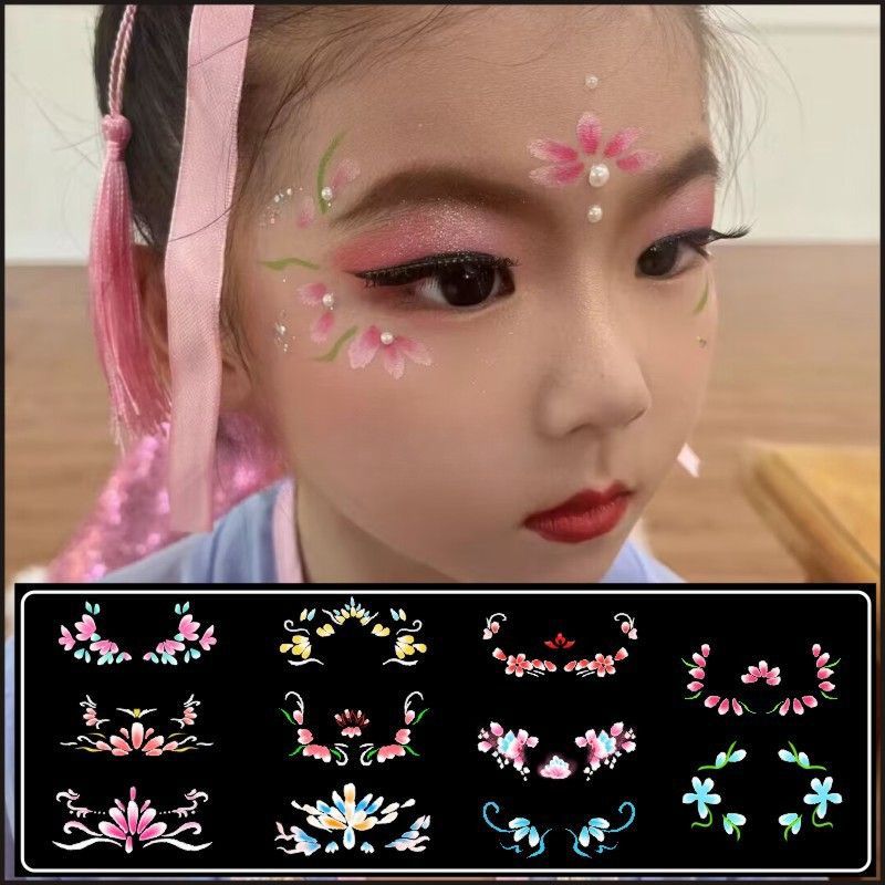 Tattoo Stickers for Kidsren, Ancient Style Han Dynasty Performance Face Painting Stickers, Children's Day Holiday Makeup and Makeup Printing