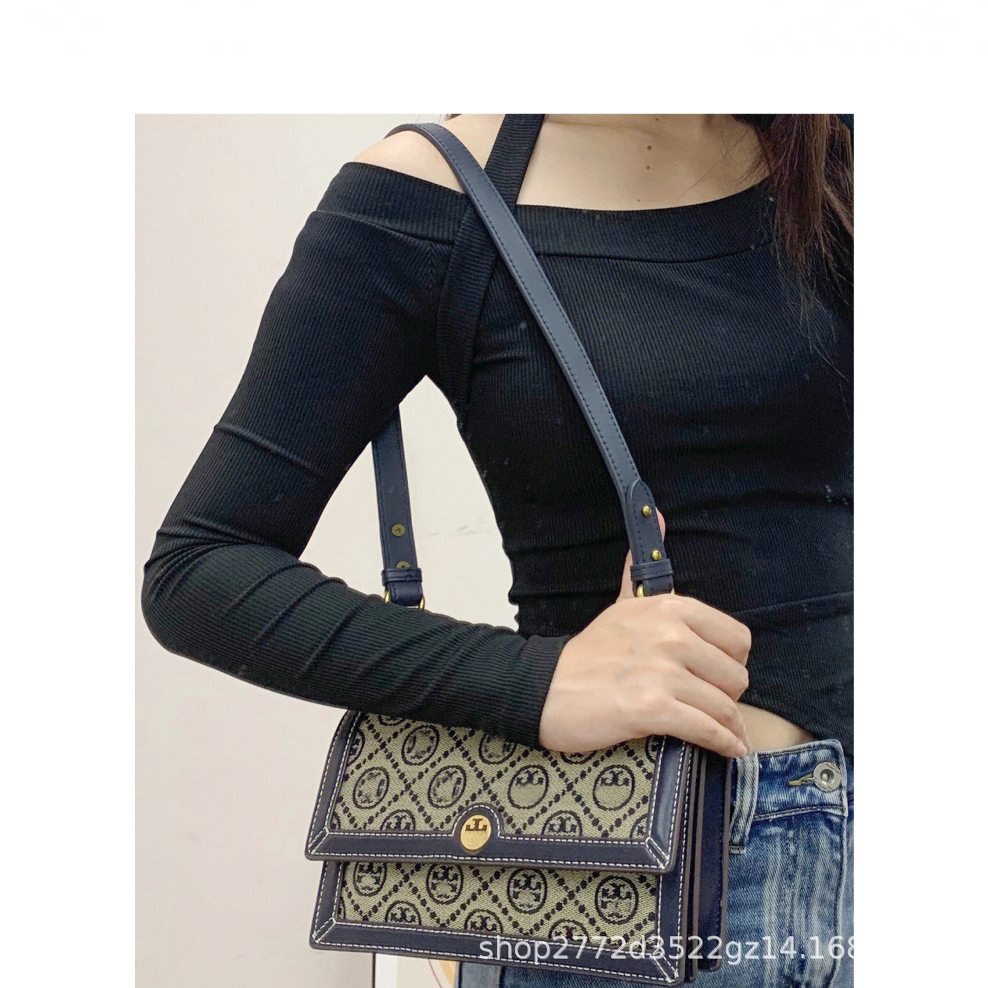 TB Bucket Bag Cowhide Shoulder Strap Old Flower Organ Bag with Underarm Shoulder Crossbody tory butch Liner Accessories