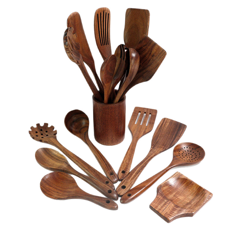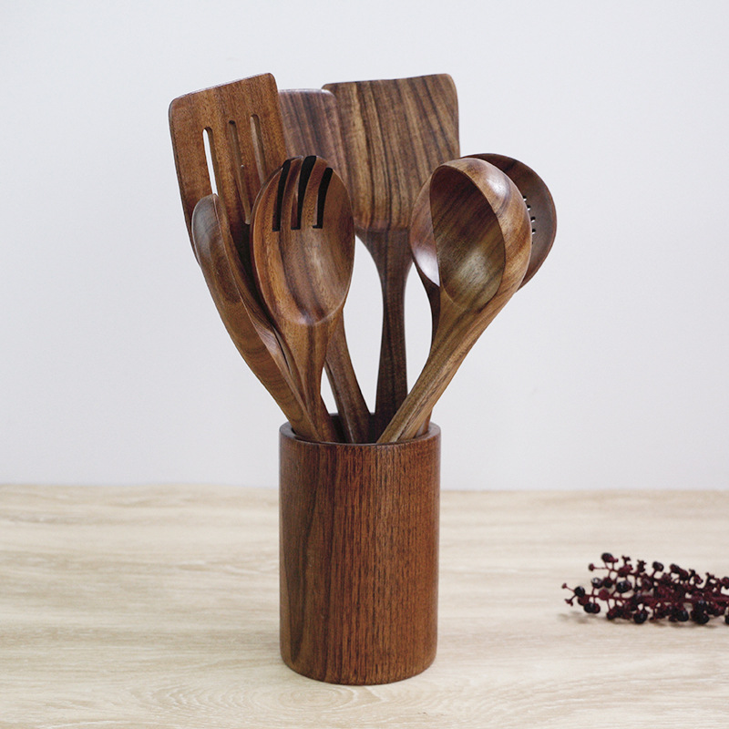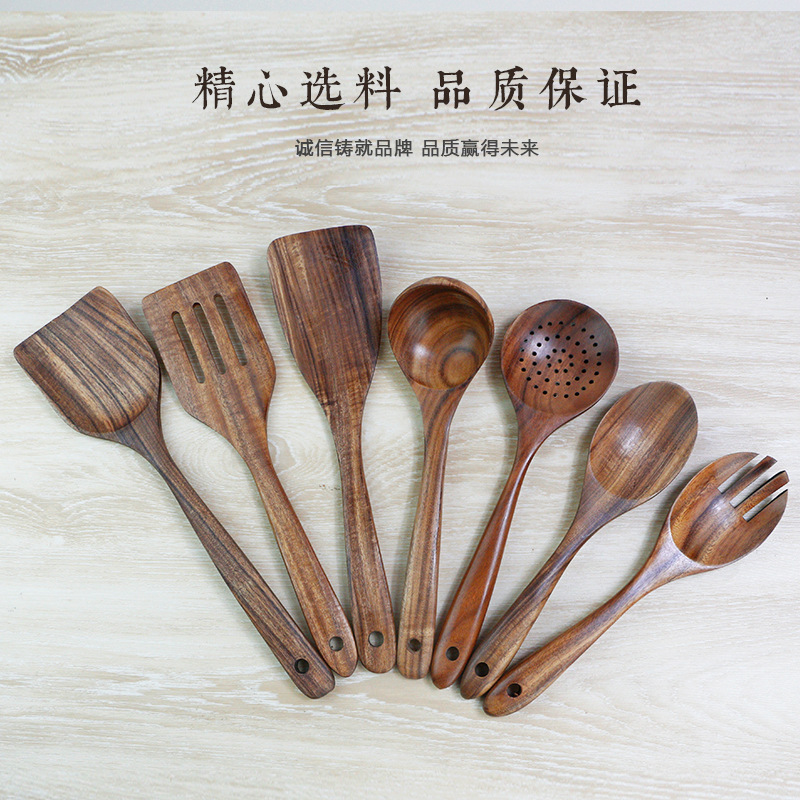 Teak spoon spatula long handle wooden soup spoon wooden spatula non-stick pan spatula cooking spoon spatula seven-piece kitchenware suit