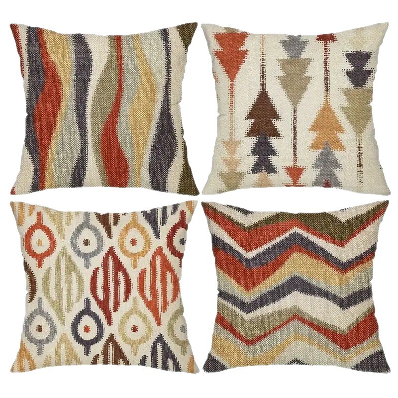 Temu Cross-Border Geometric Pattern Printed Pillowcase Home Decoration Cushion Cover Bed Lumbar Support Cushion Cover Short Plush