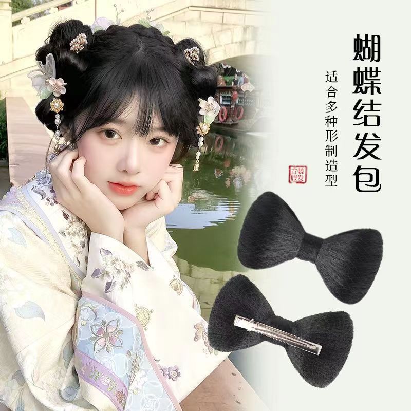 The force ∑ wig ball head hair ring cute fluffy simulation hair bun antique Chinese clothing photo shooting bow